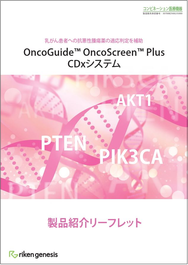 OncoGuide™ OncoScreen™ Plus CDxシステムは、 PIK3CA、AKT1またはPTEN遺伝子コンパニオン診断※1を行うコンビネーション医療機器※2です。